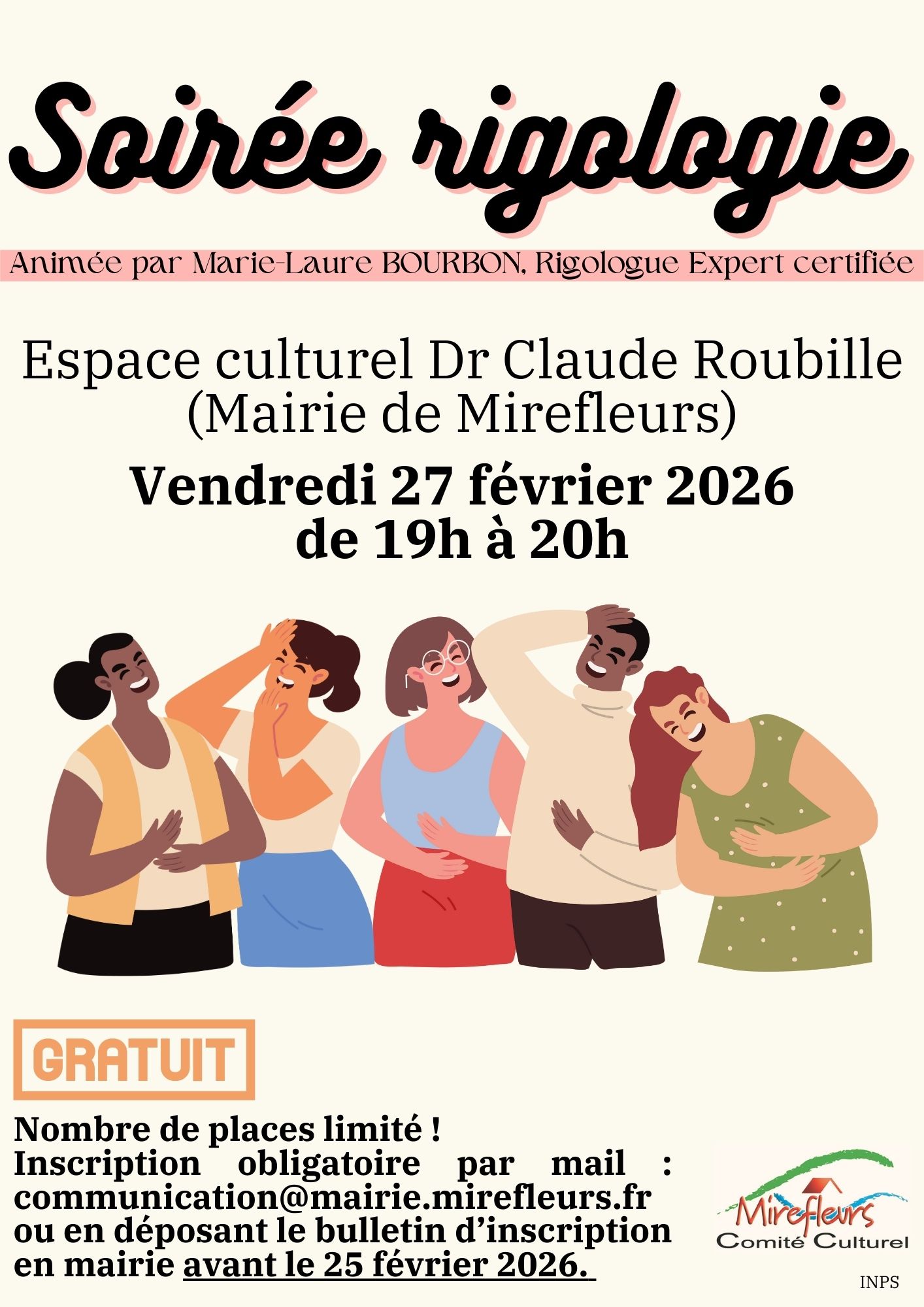 Le Comité Culturel vous propose une séance de détente gratuite de pratique de la Rigologie le vendredi 27 février 2026,